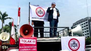 Mereka menolak RUU Omnibus Law Kesehatan lantaran dianggap merugikan masyarakat. Dalam orasinya, Ketua Umum PB IDI Adib Khumaidi menyampaikan dengan tegas penolakan tersebut.