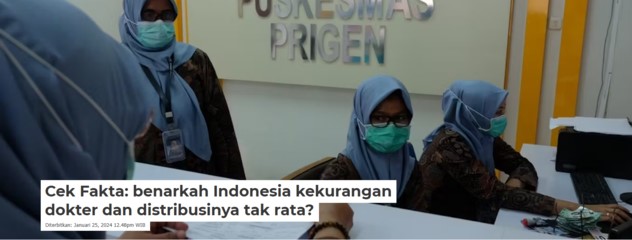 Jadi, pernyataan Ganjar bahwa Indonesia memang masih kekurangan dokter memang benar, tapi dari sisi angka kurang akurat. Sebab, dia mengklaim ada 120.000 dokter di Indonesia. Nyatanya angkanya melebihi dari itu walau secara rasio belum mencapai target.